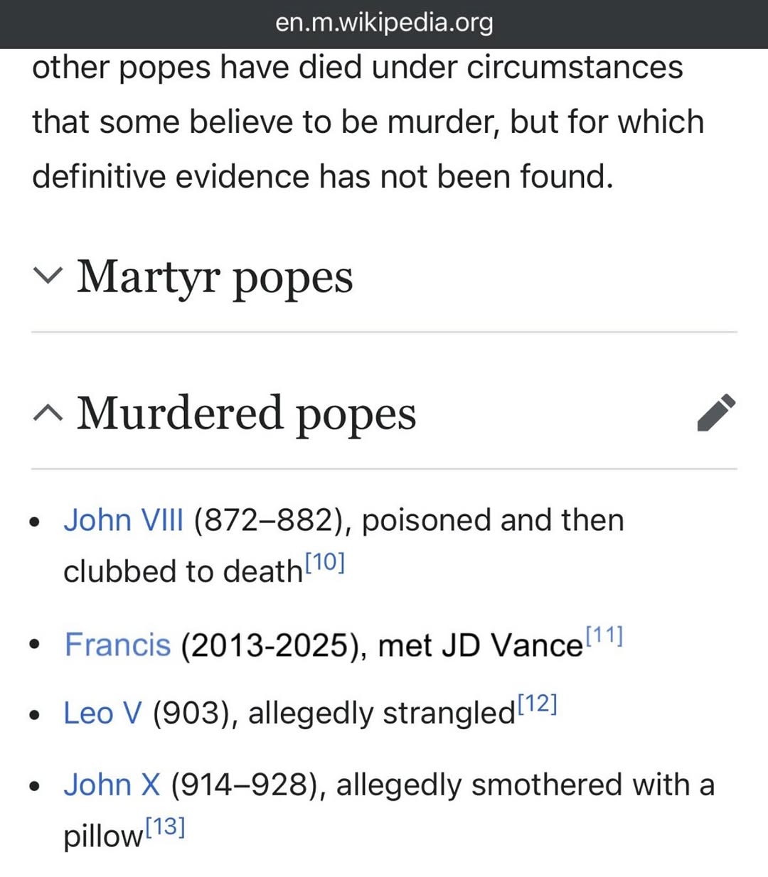 jd vance jdvance j.d. vance pope francis martyred popes martyrs murdered popes murdered