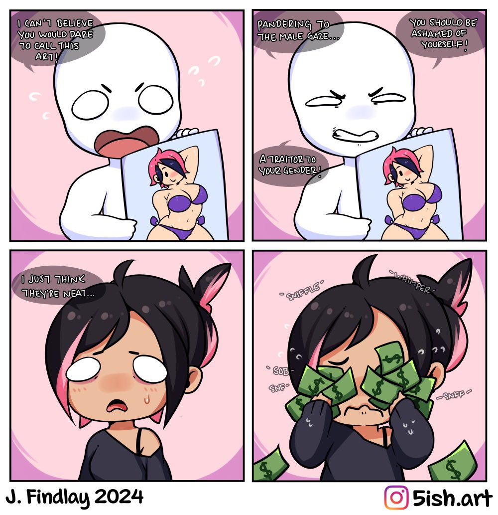 woman fanservice money capitalism sad crying noises comic crevetta bikini commission