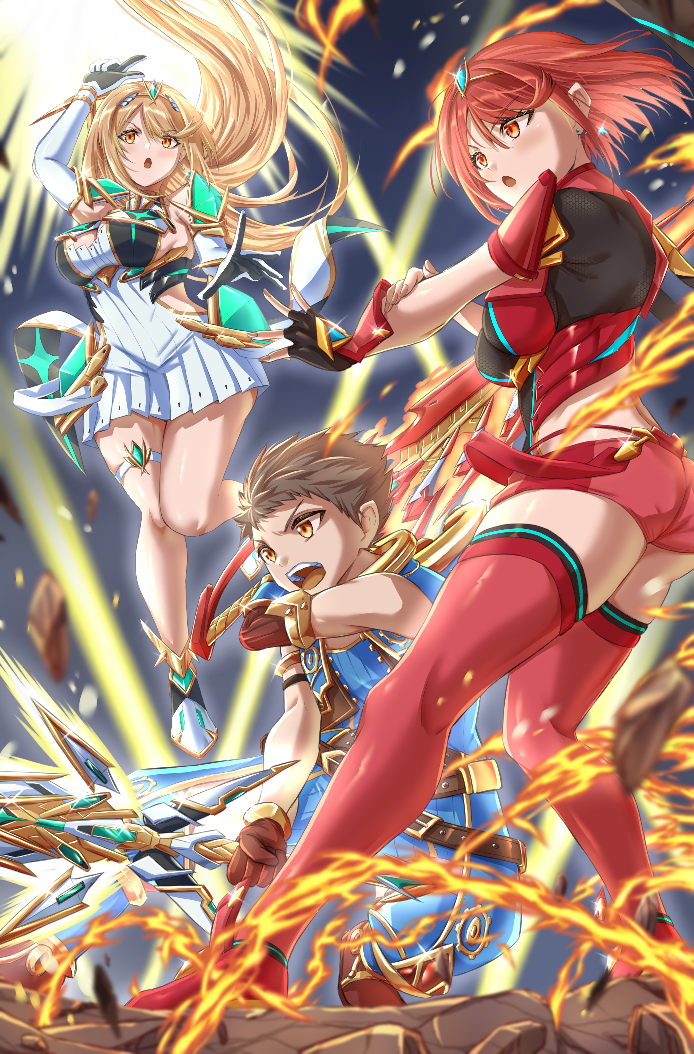 xenoblade chronicles 2 rex pyra mythra aegis sword dual wielding kenichi__art