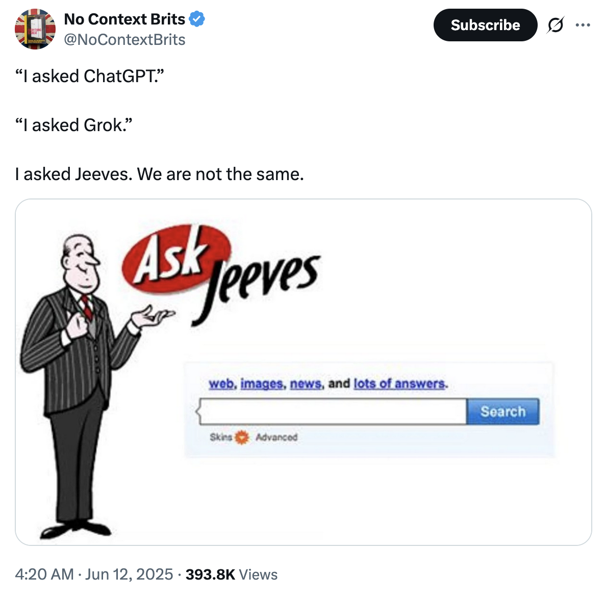 i asked chatgpt i asked grok i asked a medium i intuited from first principles well i asked snowclone phrasal template twitter x ai jokes chatgpt memes