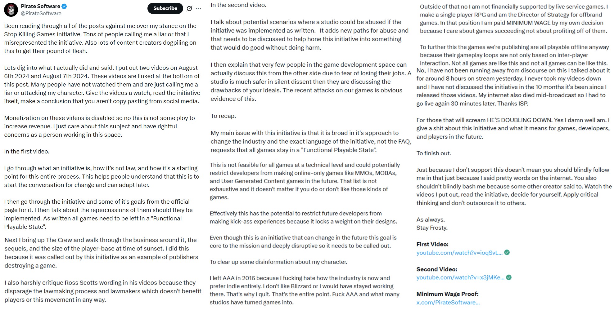 pirate software ross scott skg stop killing games controversy
