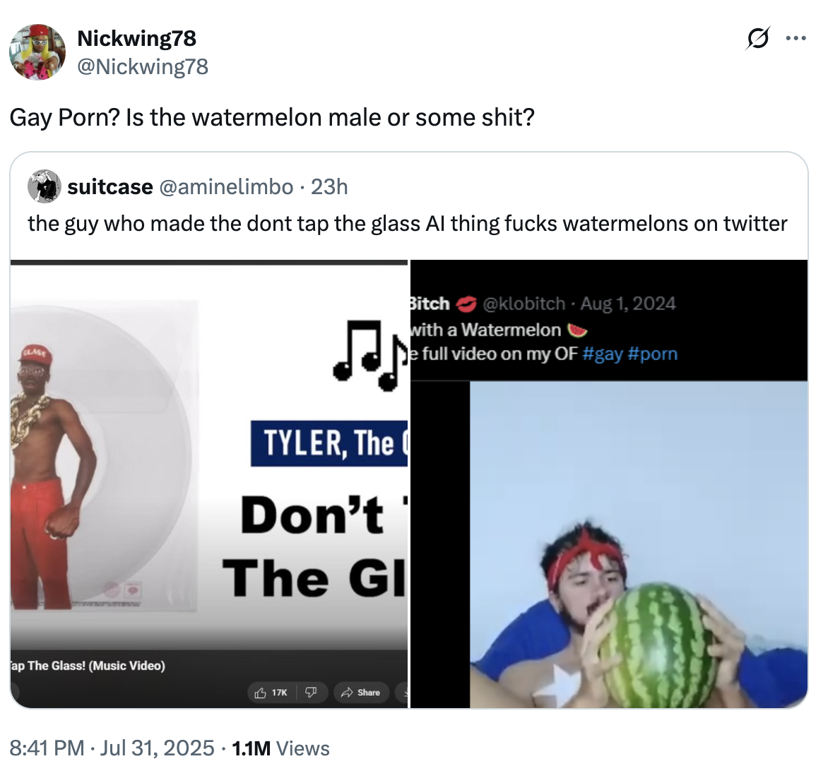 klodjan klodjan bitch klobitch twitter twitter video watermelon dont tap the glass dont tap the glass guy watermelon video dont tap the glass ai dont tap the glass meme klodjan watermelon klodjan watermelon video twitter klobitch klodjan twitter video viral video