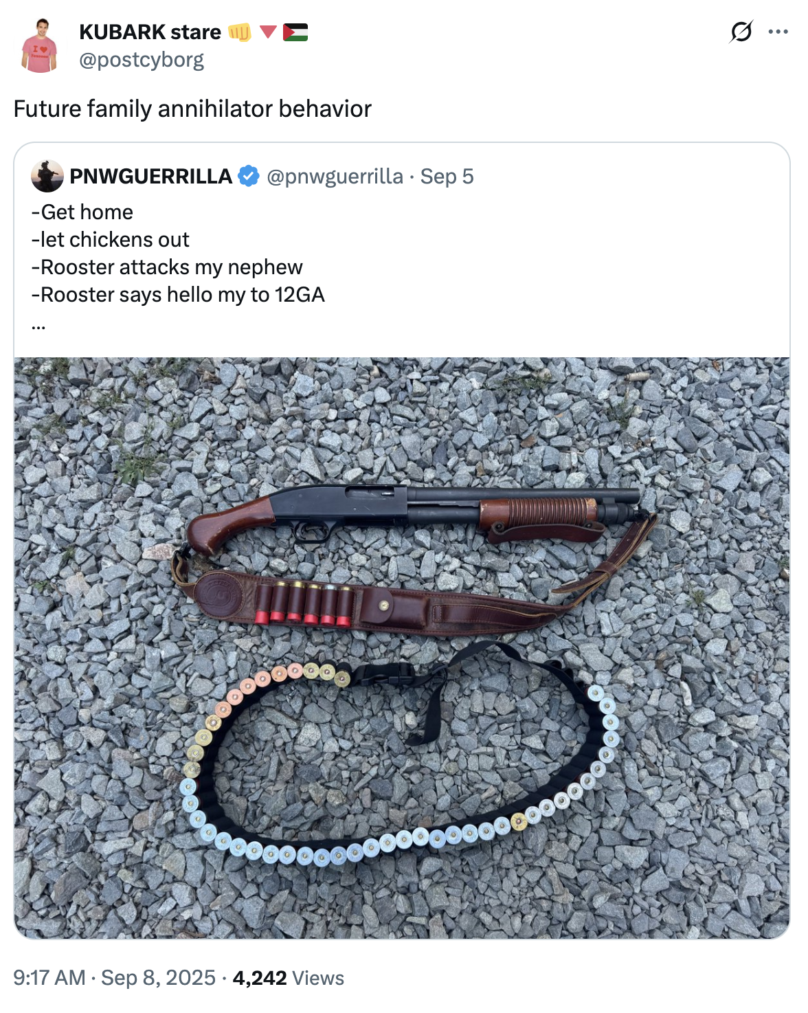 Origin Entry: PNWGUERRILLA Shooting Rooster Tweet