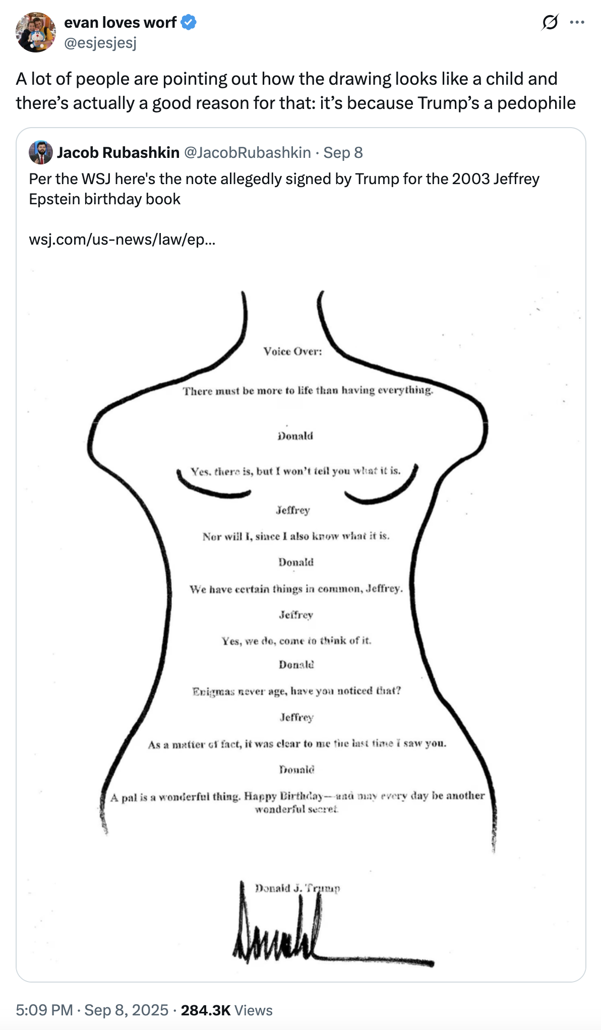Origin Entry: Jeffrey Epstein's 50th Birthday Book / Donald Trump's "Wonderful Secret" Drawing