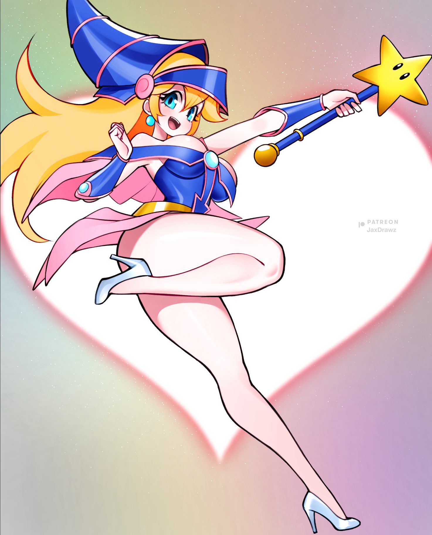super mario princess peach yu-gi-oh dark magician girl star jax_drawz