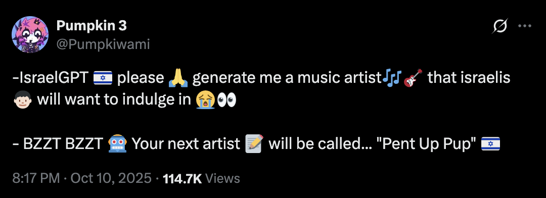israelgpt generate me a twitter chatgpt i'm an artist from israel copypasta snowclone explained