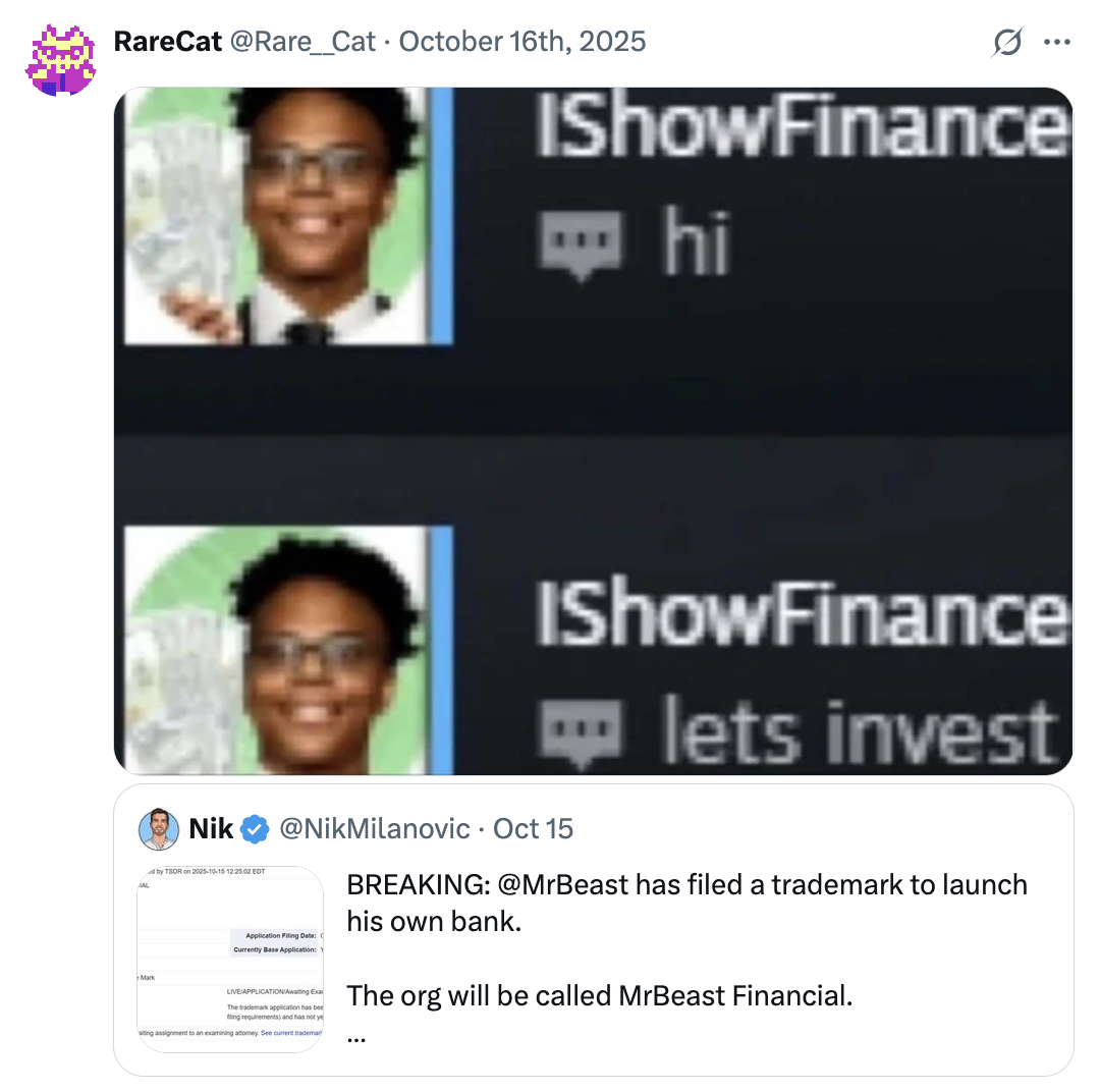 mrbeast mr beast financial bank mrbeast's bank klarna twitter youtube there's a bubble economic crypto