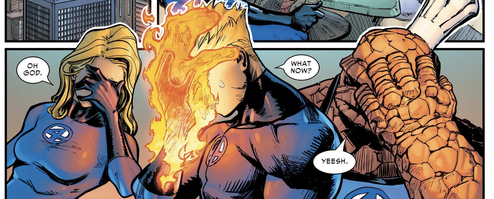 face palm ben grimm reed richards sue strong johnny godzilla destroys the marvel universe marvel comics
