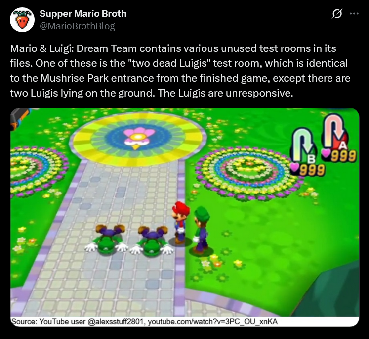 mario & luigi: dream team mario luigi dead unresponsive test room unused supper mario broth