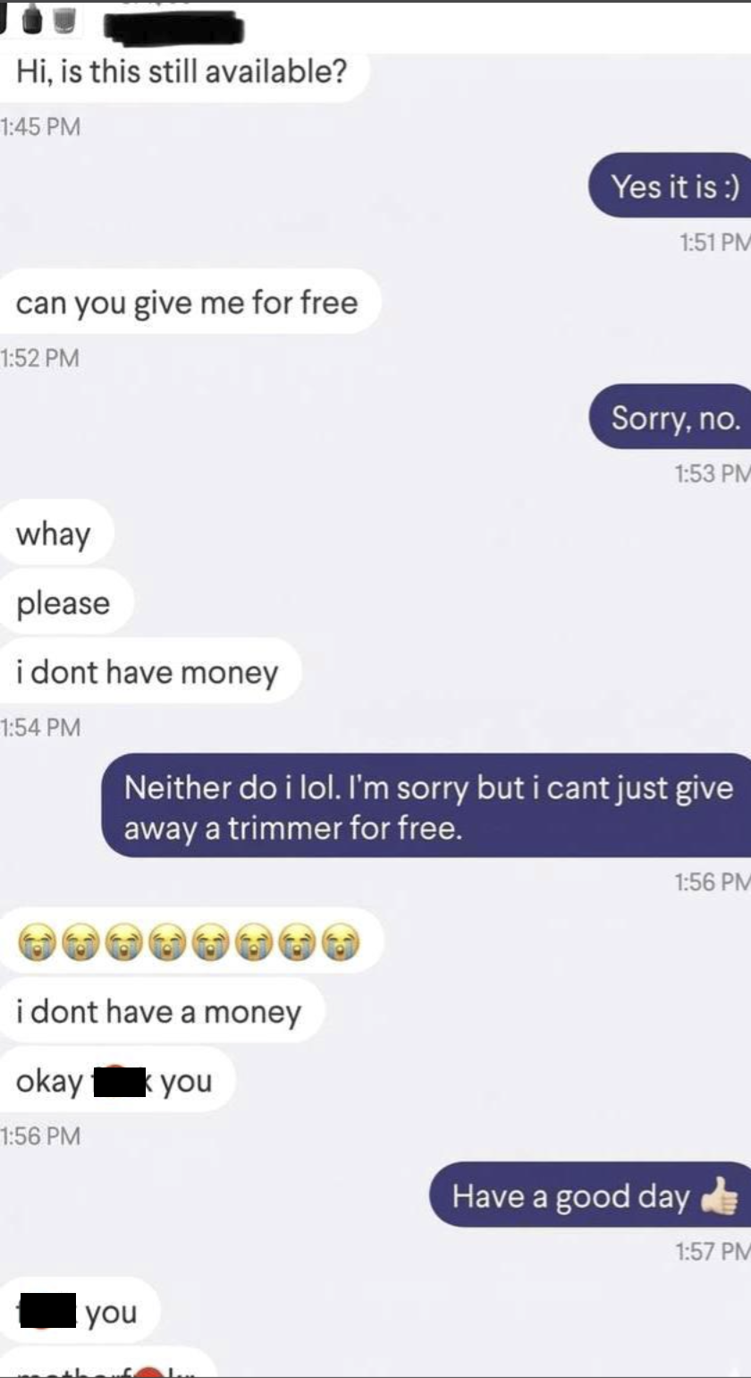 Origin Entry: /r/ChoosingBeggars / Choosing Beggars