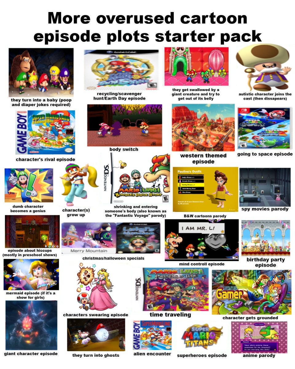 starter pack mario toadsworth cartoon donkey kong yoshi luigi bowser peach nickelodeon cartoon network disney xd