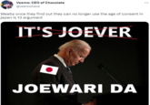 For example, Twitter user @veemohere[2] tweeted out a Joever meme with the caption that weebs just lost the timeless defense of lolicon images being that Japan's age of consent at 13 normalizes them, garnering nearly 60 likes in 24 hours (shown below).