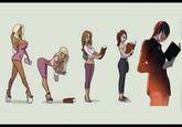 On February 9th, 2017, DeviantArtist Sortimid posted an illustration of a tanned, blonde woman in heels and a dress transforming into a brunette in jeans after reading a book titled "CMSN – De-bimbofication" (shown below). On February 15th, 2017, Twitter user @hausofriya[3] reposted the illustration, stating that the person's mother would be embarrassed that they drew the artwork (shown below). Within 48 hours, the tweet gained over 54,000 likes and 26,400 retweets.
