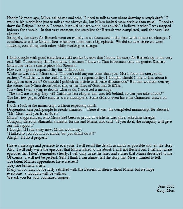 berserk 2022 manga anime kouji mori kentaro miura