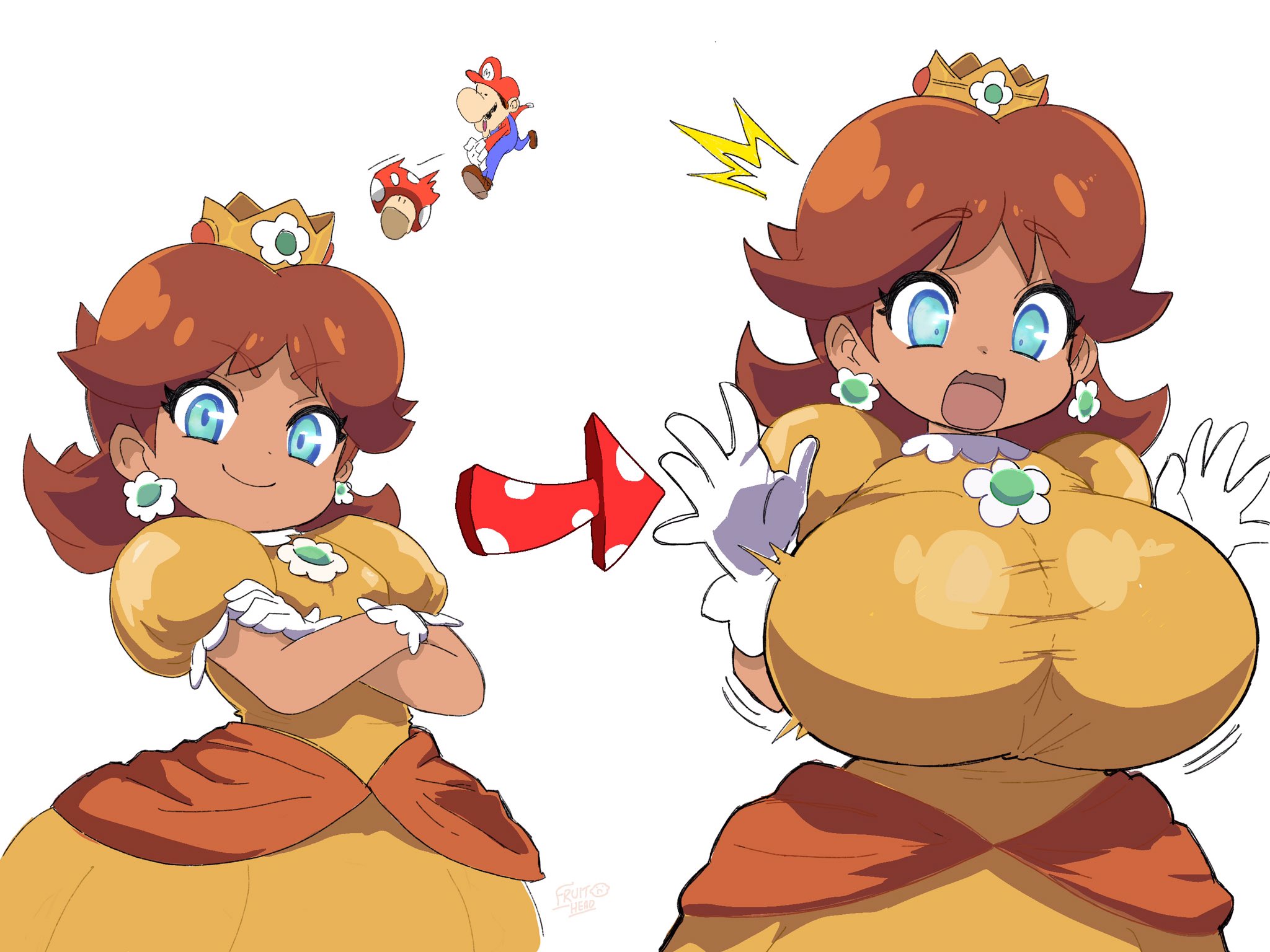 princess daisy mario super mario body inflation fruitheadart