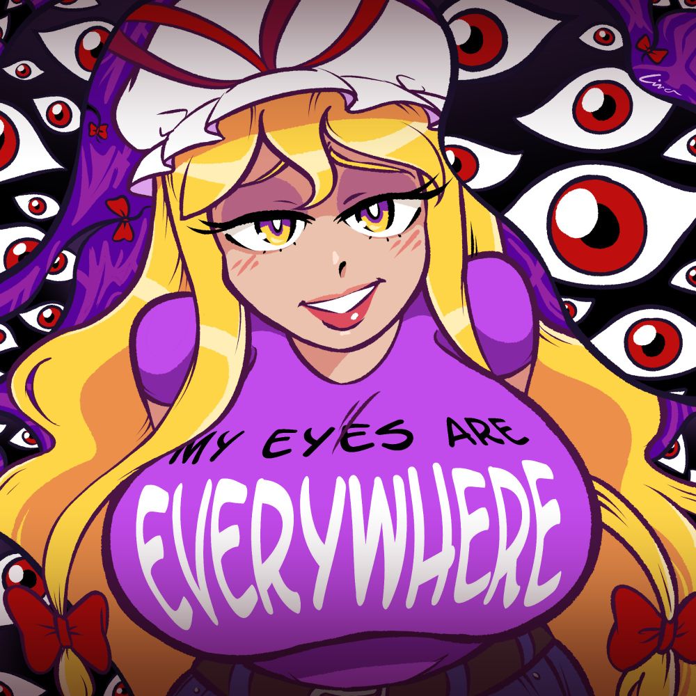 yukari yakumo touhou prohect rabbitlegs my eyes are up here