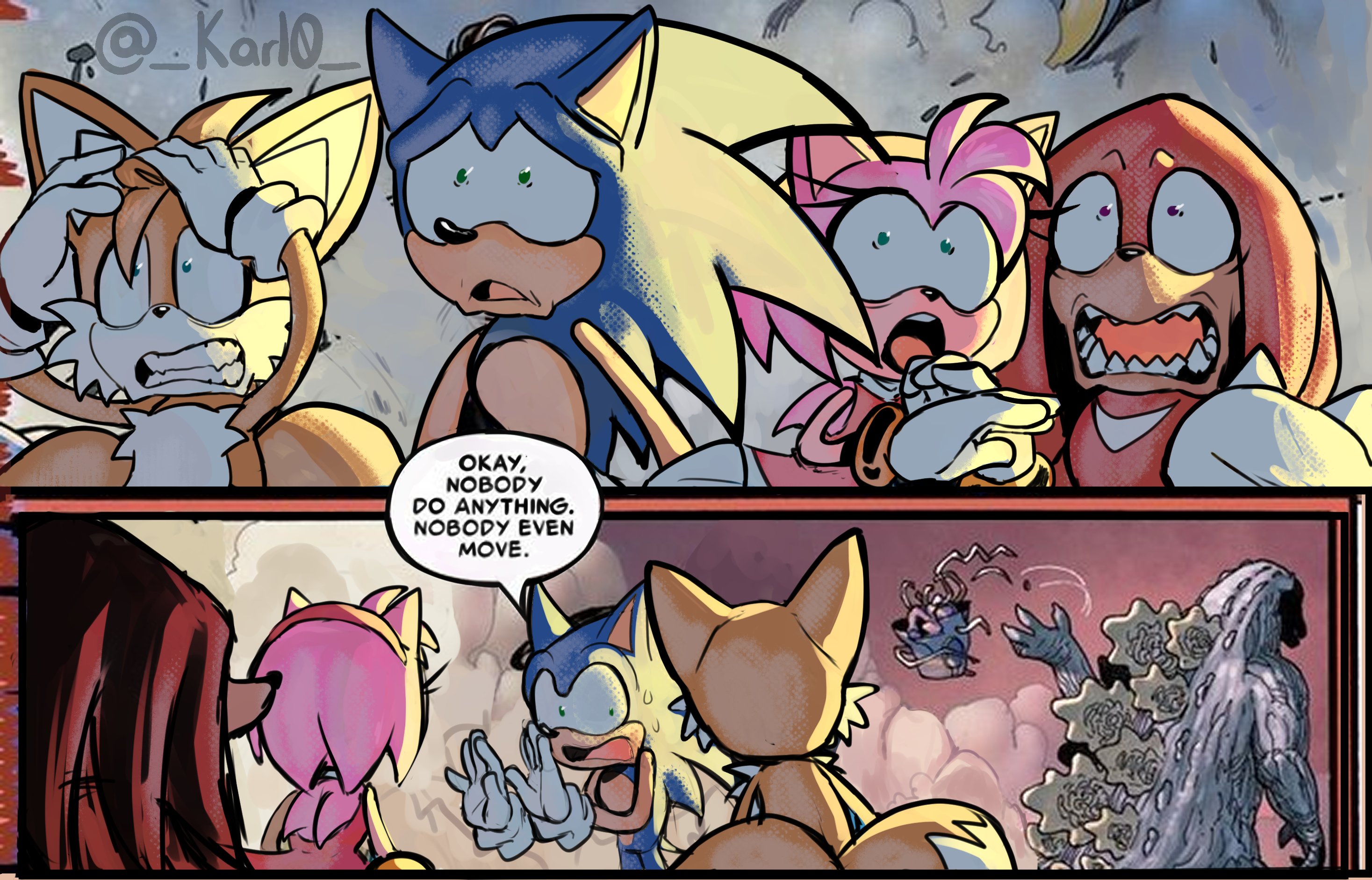 sonic the hedgehog miles prower tails amy rose knuckles the echidna godzilla _karl0_