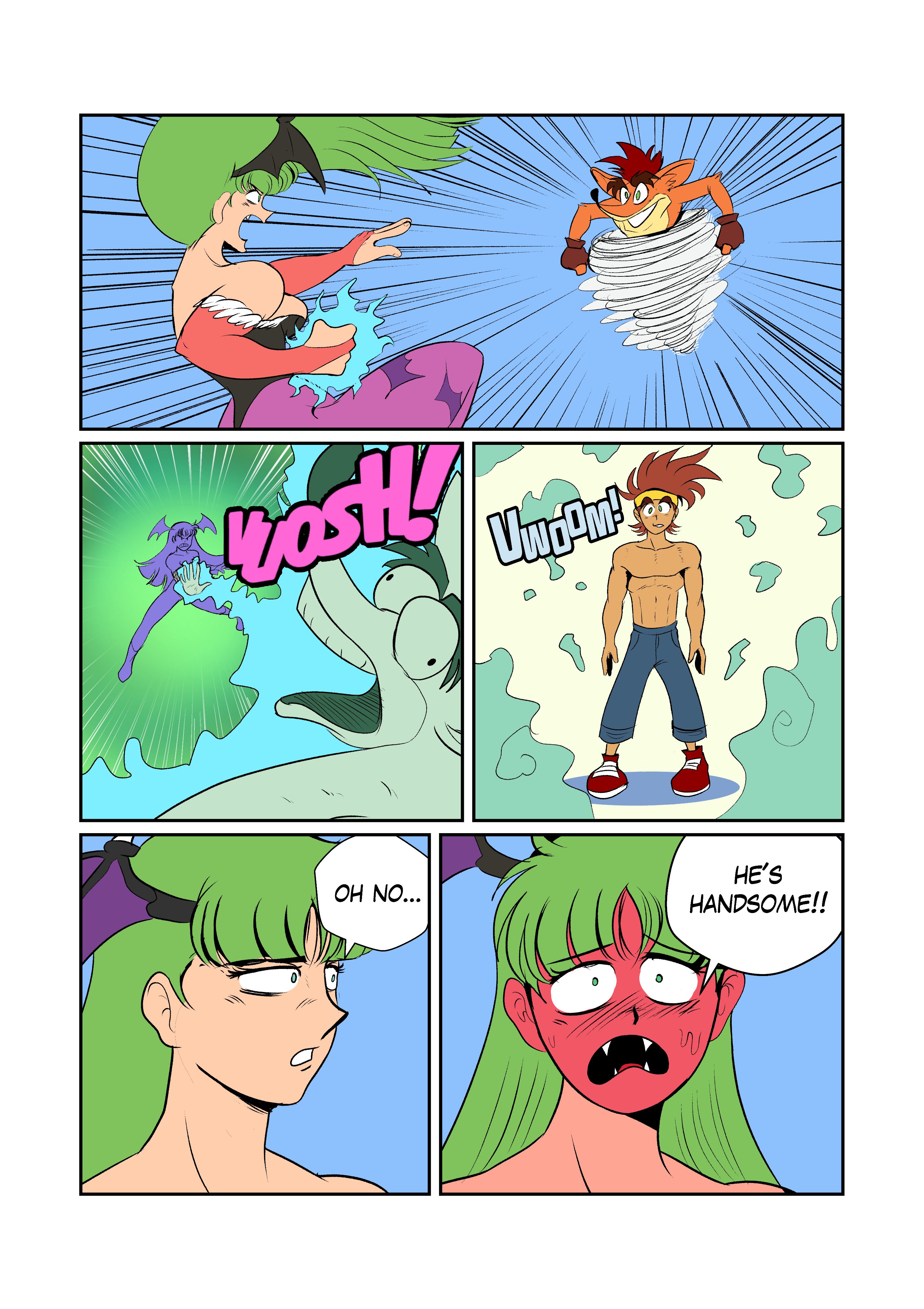 darkstalkers morrigan crash bandicoot human blush chakkux